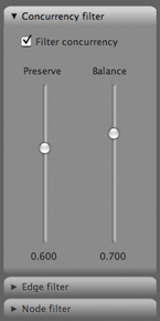 The concurrency filter is used to resolve conflicts between two event classes. Conflicts are defined as two nodes which are connected in both directions. This may represent either a lengh-two-loop or two event types which are actually in parallel, i.e. can be executed concurrently.