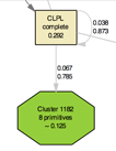 The internal components of clusters and their structure can be explored by clicking on the green cluster nodes. Note that clusters which comprise a large number of primitive nodes will take a considerable time to render and layout.
