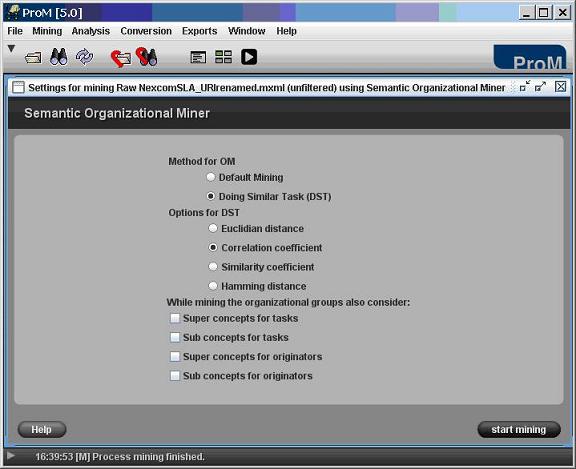 Start the Semantic Organizational Mining plug-in via